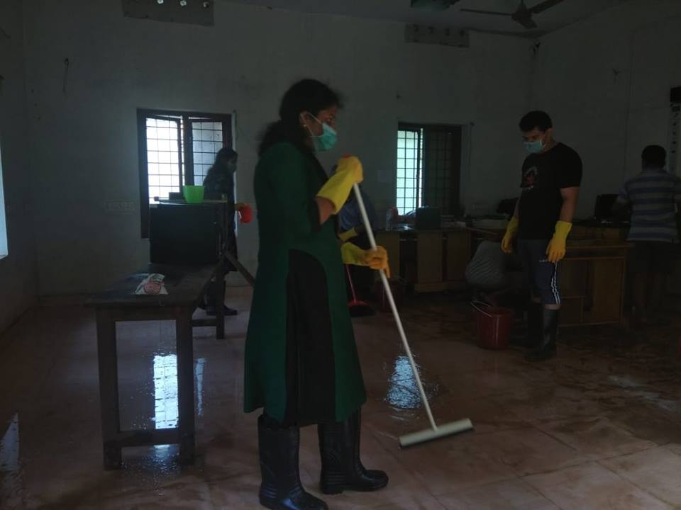 Team Prathidhwani cleaned class rooms, Computer Lab, Science Lab, Office Room and Kitchen of Prince Marthanda Varma High School. The mission completed by 6'O clock. We also cleaned one house near by school.