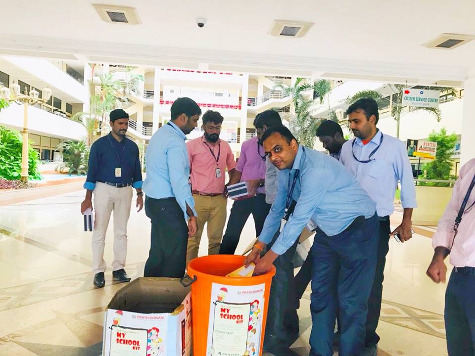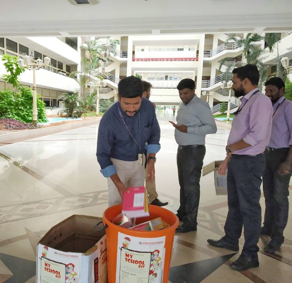 Thanks for the contributions for "My School Kit" in Bhavani building. We donated school kits for 25 schools already, 28 schools pending, we request IT employees to come forward to contribute.