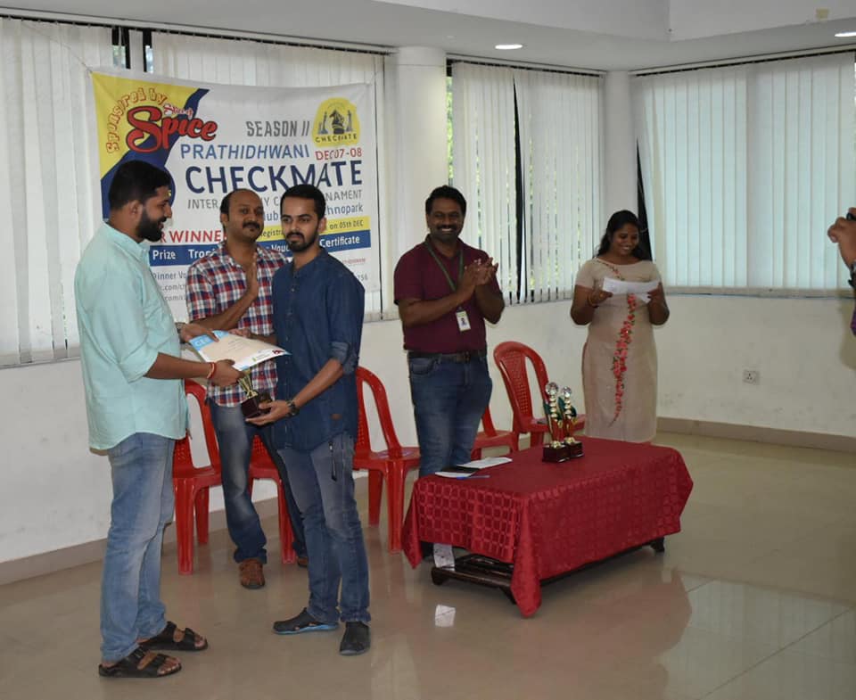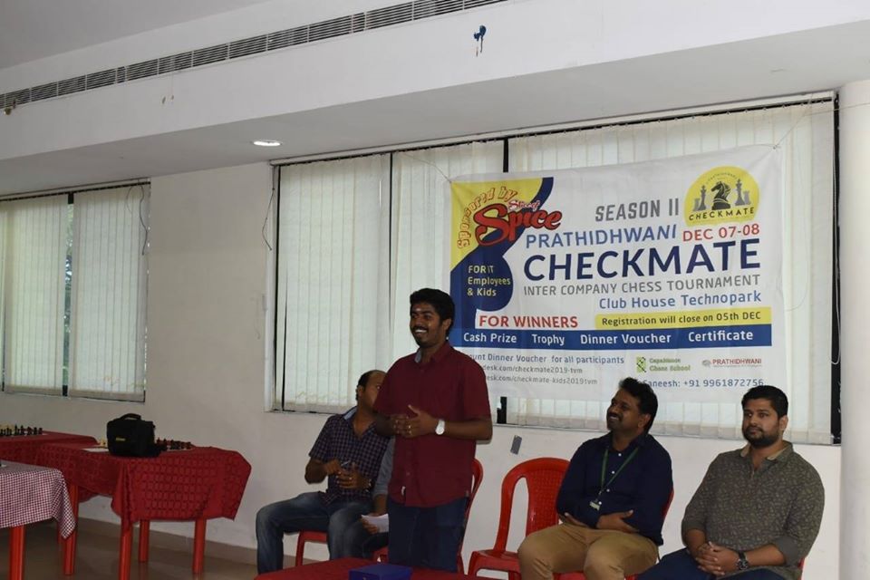 Prathidhwani, Welfare organization of IT employees, under the aegis of Capablanca chess school, "Checkmate 2019- Season II" - Chess Tournament for IT Employees and their Kids was held at Technopark Club House on 7th and 8th of December 2019.